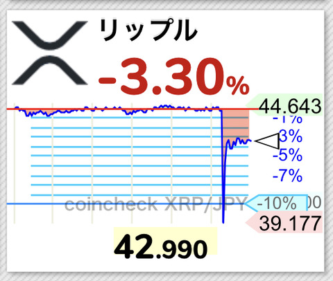 【悲報】仮想通貨リップル、44円から39円まで急落で初売りバーゲンセール実施中wwwwwwww【XRP】
